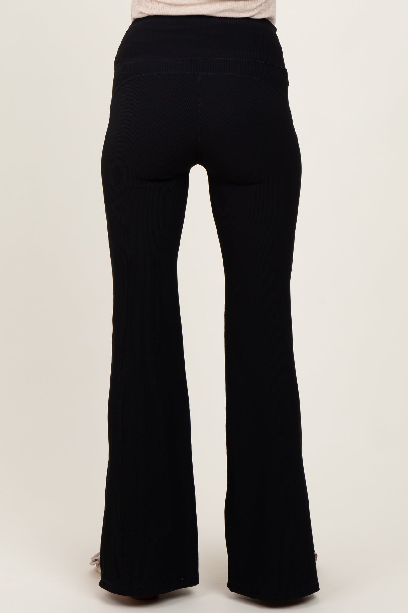 Black Ribbed Split Flare Maternity Leggings