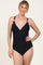Black Ribbed V-Neck Ruched Criss Cross Low Back One Piece Swimsuit