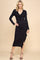 Details A rib knit maxi dress with long sleeves, a ruffle accent v-neckline, ruched sides, and a side slit with a ruffle accent. Content + Care