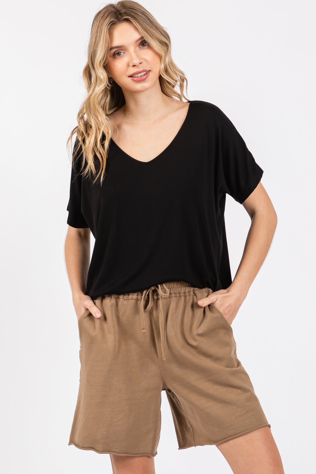 A solid top featuring short dolman sleeves and a rounded v-neckline.