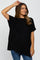 A solid maternity top with a boatneck, short dolman sleeves, and side slits at the hemline.