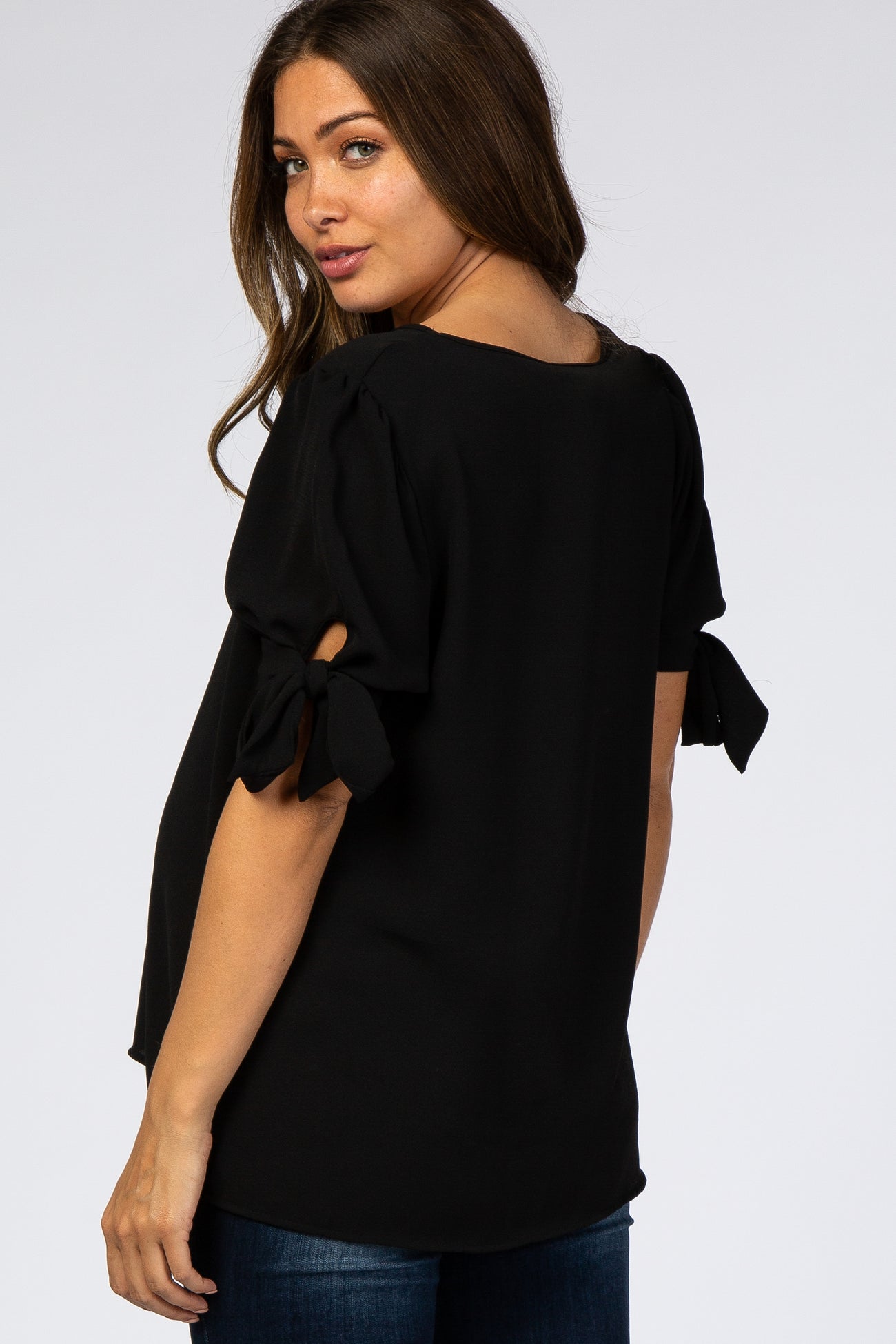 Black Short Tie Sleeve Maternity Top