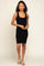 A sleeveless ribbed knit dress. Fitted. Square neckline.