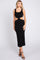 A solid knit midi dress with a scoop neckline and side cutouts.