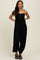 Black Smocked Button Front Shoulder Tie Jumpsuit