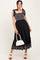 Black Smocked Embroidered Shoulder Tie Midi Dress