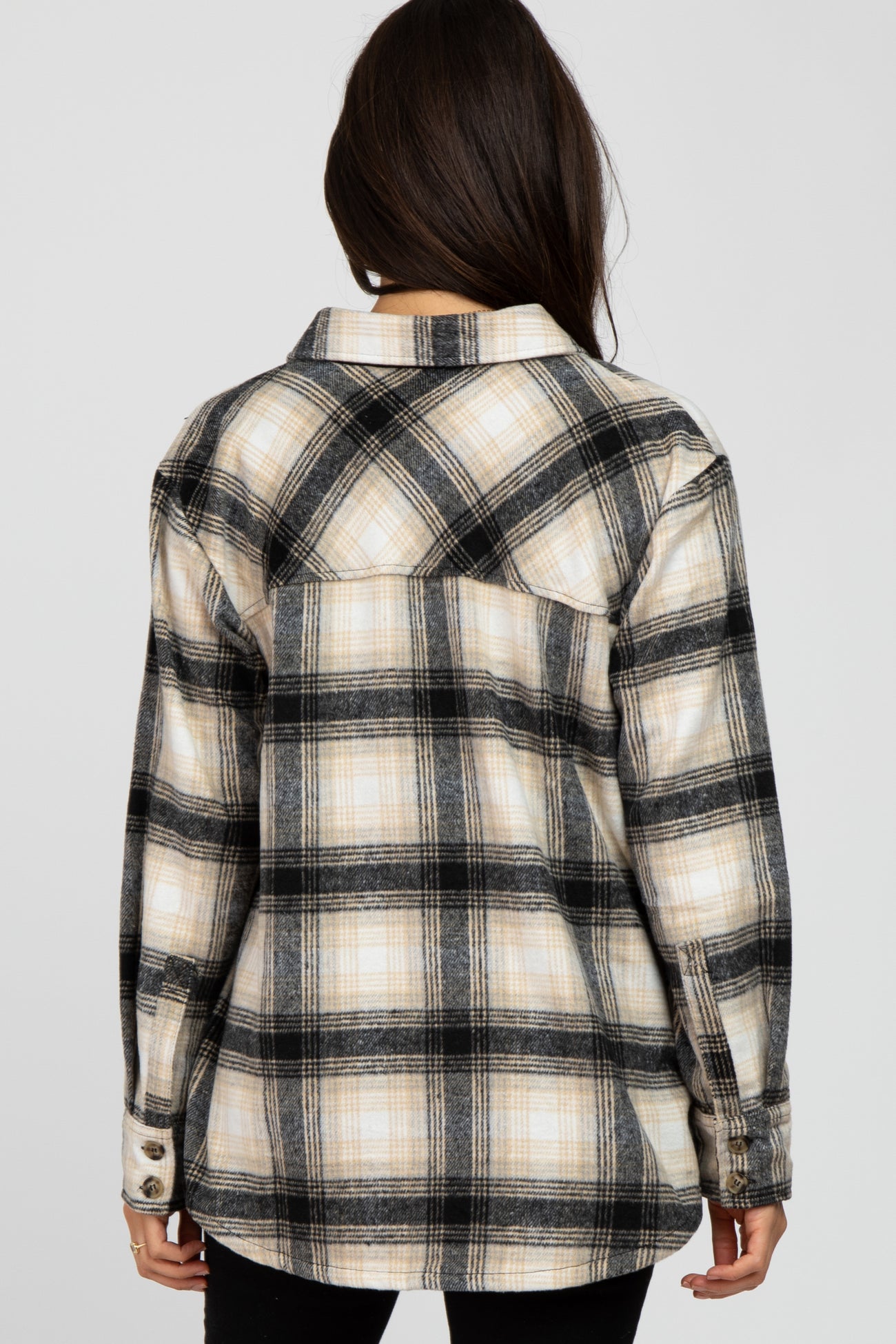 Details A soft knit plaid print flannel shacket featuring a collared neckline, a button down front, front pockets with button closures and long sleeves with a double button closure. Content + Care