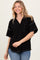 Black Solid Ribbed Collar V-Neck Tunic Top