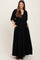 Black Solid Woven Elbow Sleeve V-Neck Button Down Maternity Maxi Dress