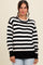 Stay cozy and chic with our Black Striped Basic Sweater, a timeless wardrobe essential. Crafted with a soft, comfortable knit, this sweater features classic black and white horizontal stripes that add a bold yet versatile statement to any outfit. The relaxed fit and ribbed cuffs and hem ensure a flattering silhouette and extra warmth. Perfect for layering over your favorite jeans or skirts, this sweater effortlessly blends casual comfort with modern style. Elevate your everyday look with this must-have piece that transitions seamlessly from day to night. Available in multiple sizes for the perfect fit.