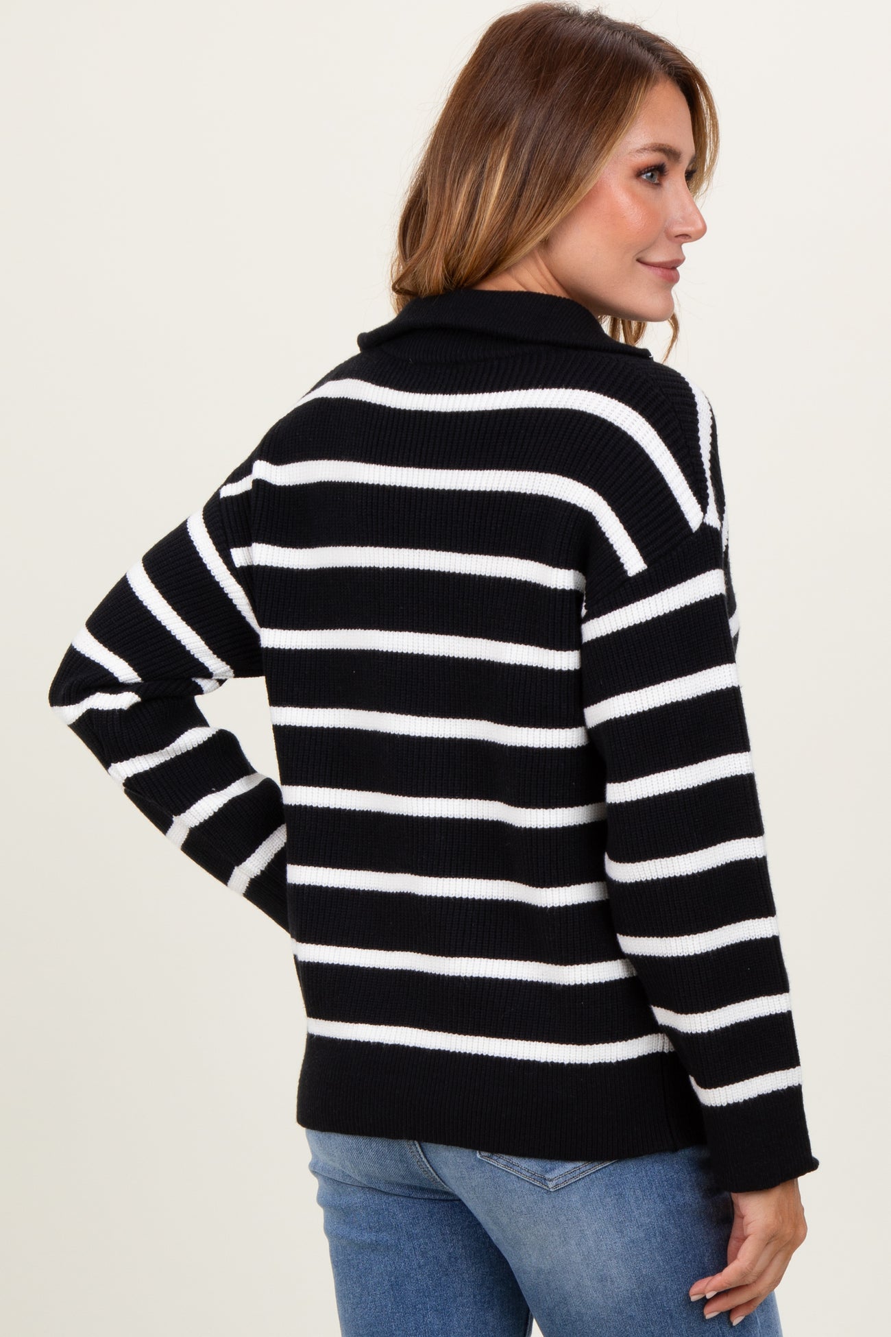 Black Striped Knit Half Zip Sweater