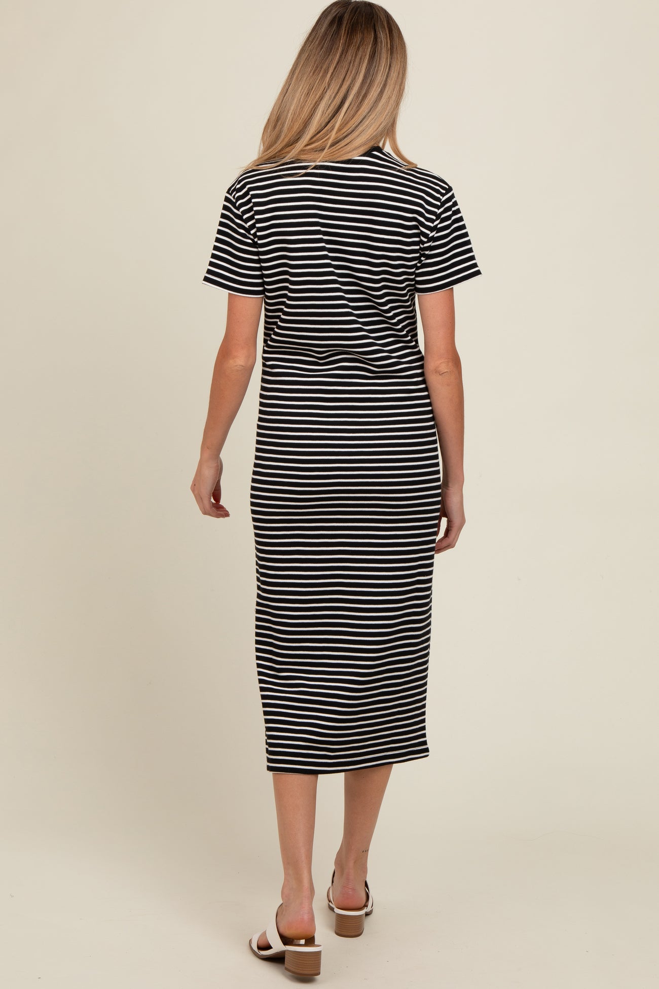 Black Striped Short Sleeve Maternity T-Shirt Midi Dress