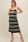Black Striped Shoulder Tie Side Slit Maternity Midi Dress