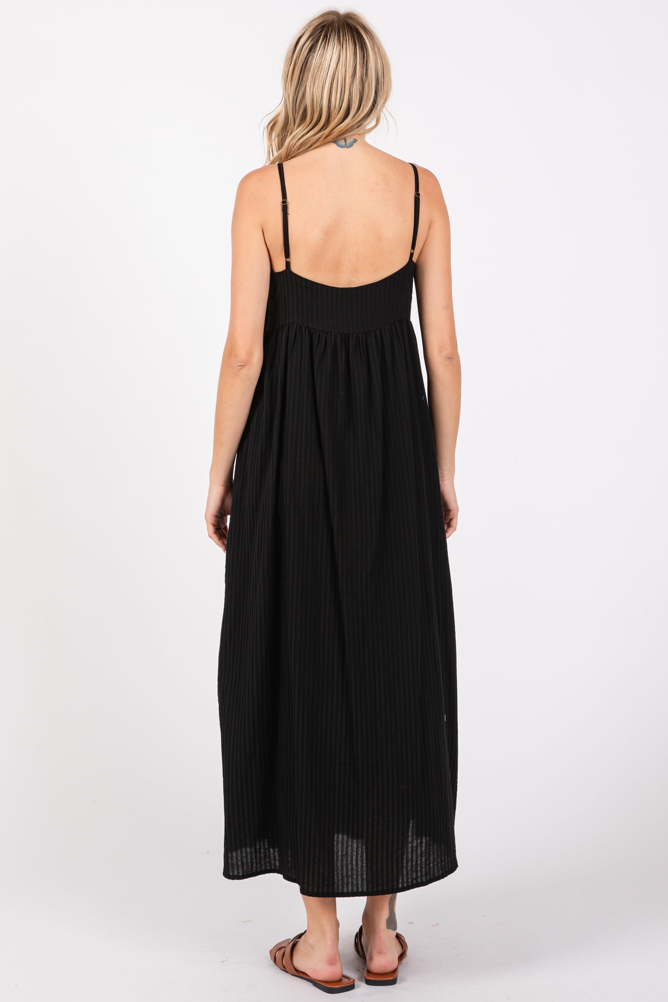 Black Striped V-Neck Sleeveless Side Pocket Dress