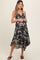 Black Tropical Floral Front Tie Maternity Midi Dress