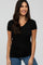A soft knit top featuring a v-neckline, short sleeves and ruched sides.