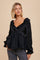 Black Washed Satin Cross Ruffled Long Sleeve Blouse