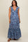 Blue Abstract Floral Ruffle Accent Maternity Maxi Dress