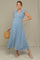 Blue Button-Down Polka Dot Shirred Bow Maternity Midi Dress