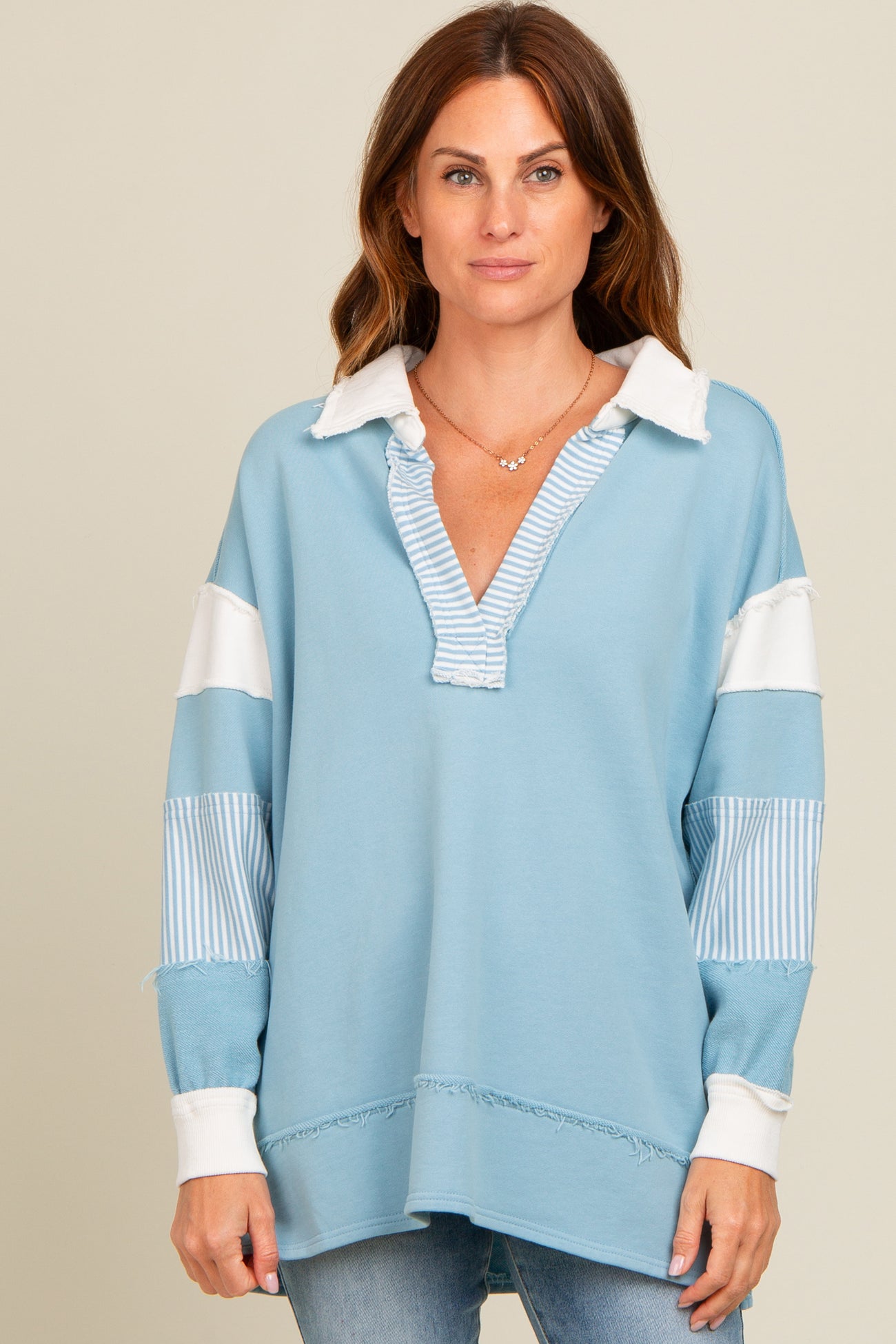 Blue Colorblock Stripe Maternity Polo Pullover Top
