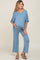 A basic set with cropped pants featuring an elastic smocked waistband. A short sleeve tee with a v-neckline.