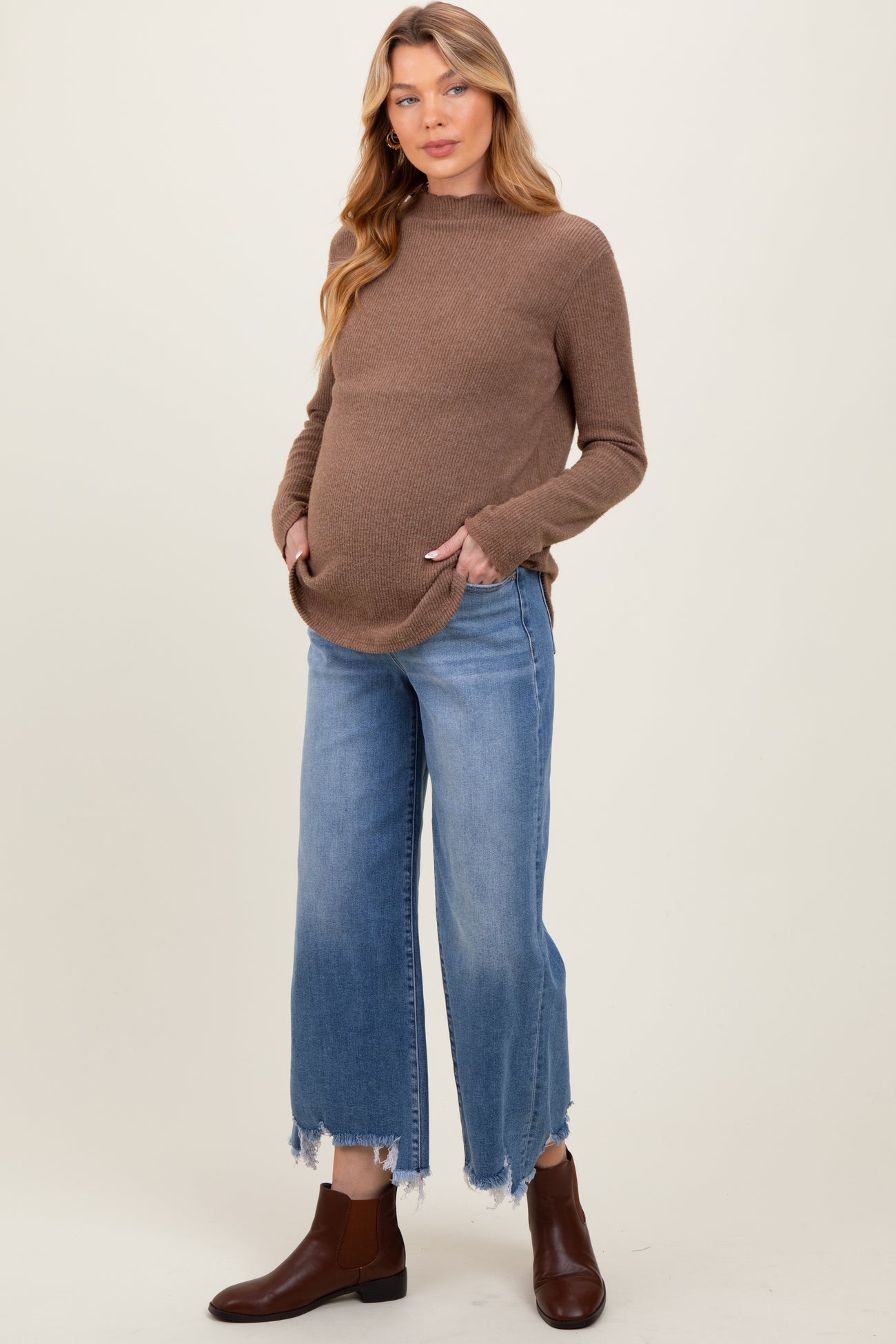 Blue Distressed Hem Cropped Wide Leg Maternity Jeans