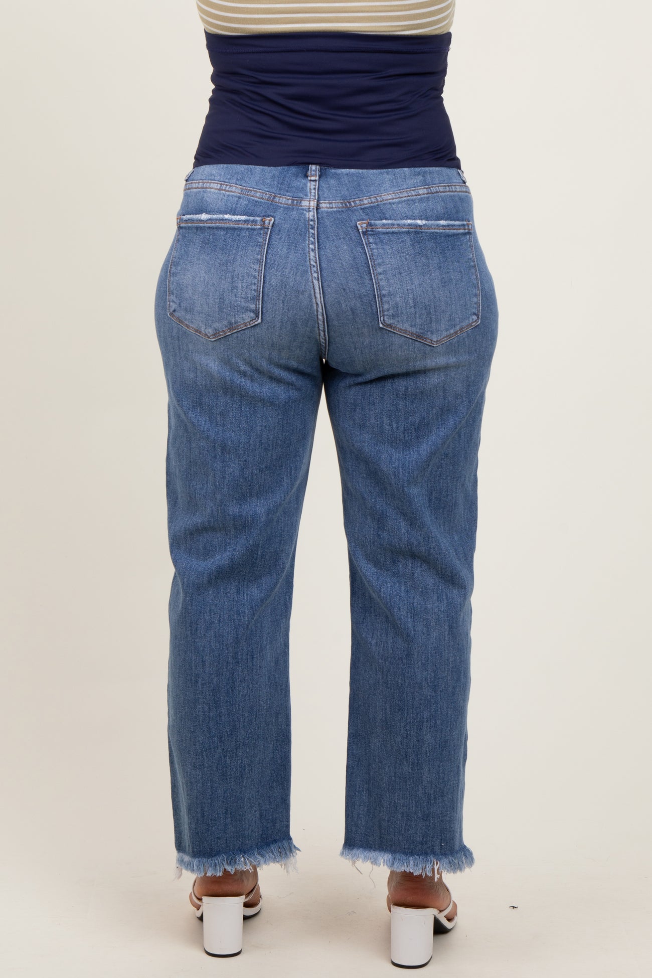 Step out in style and comfort with our Distressed Open Knee Relaxed Straight Leg Maternity Plus Jeans. Crafted with soft, stretchy denim, these jeans are designed to grow with you, offering a flattering relaxed fit and a full panel for gentle belly support. The trendy distressed details and open knee add a modern edge to your maternity look, while the straight leg shape complements every silhouette. Pair them with your favorite tops or cozy sweaters for effortless everyday outfits. Stay comfortable, stylish, and confident through every trimester with these must-have maternity jeans!