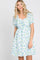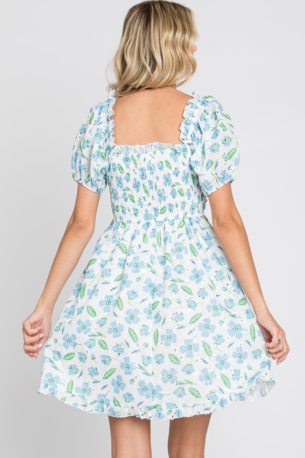 Details A floral embroidered lace dress with ruffle accents, cinched tie bust detail and puff sleeves. Pocketed. Dress is double lined. Content + Care