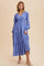 Blue Embroidered Long Sleeve Maxi Dress