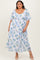 Blue Floral Chiffon Puff Sleeve Plus Midi Dress