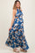 Blue Floral Halter Side Cutout Maternity Maxi Dress