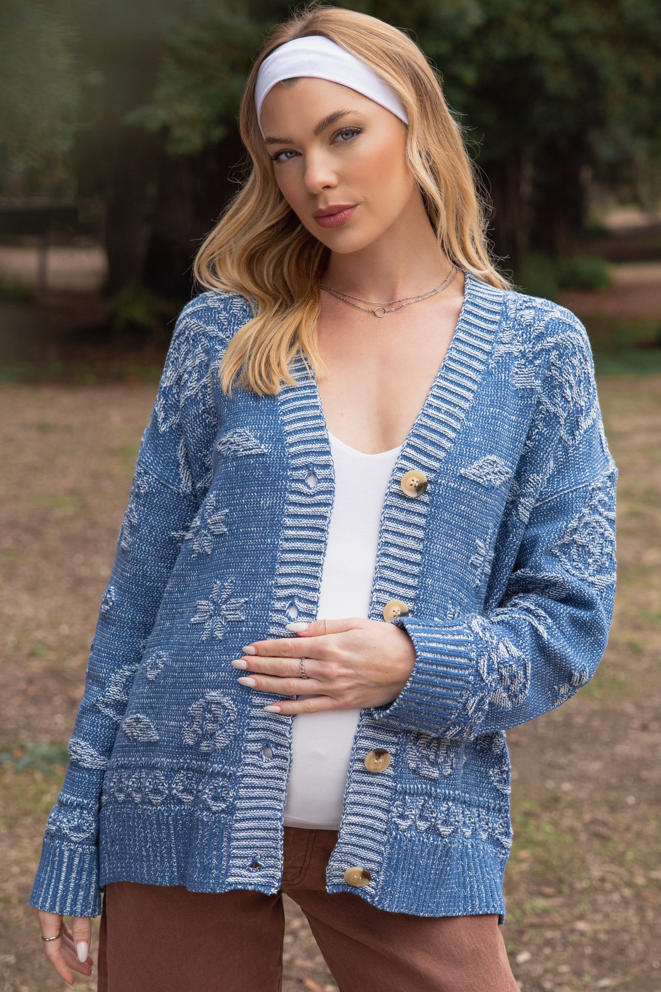 Blue Floral Knit Maternity Button Cardigan