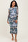 Blue Floral Mesh Overlay Ruched Maternity Midi Dress
