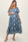 Blue Floral Print Ruffle Hem Maternity Midi Dress