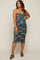 A floral print mesh maternity midi dress featuring a sweetheart neckline, a halter tie, ruched sides and double lining.