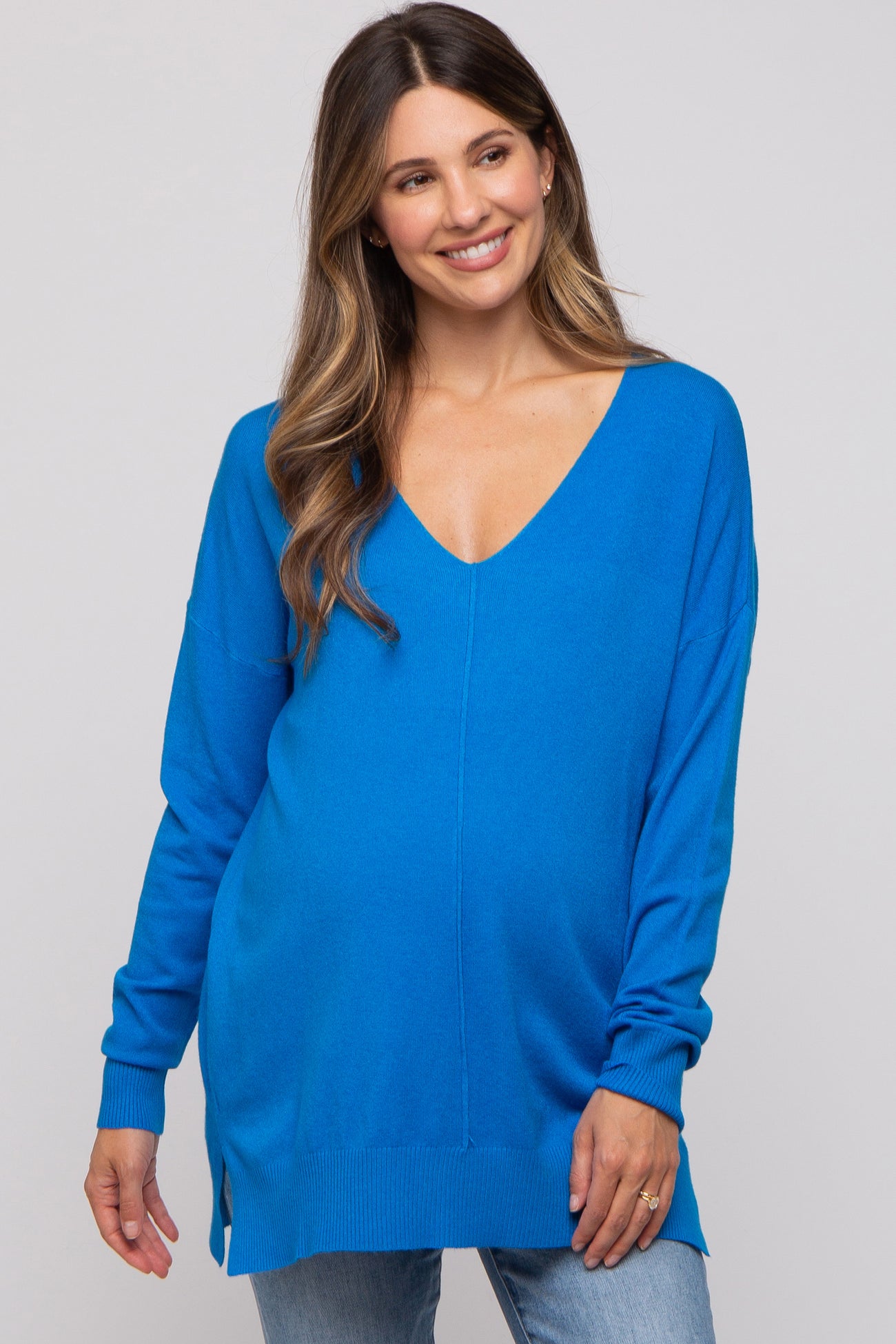Blue Long Sleeve Side Slit Maternity Sweater