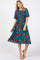 Blue Multi-Color Floral Smocked Puff Sleeve Dress