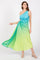 Blue Ombre Pleated Asymmetrical Maxi Dress