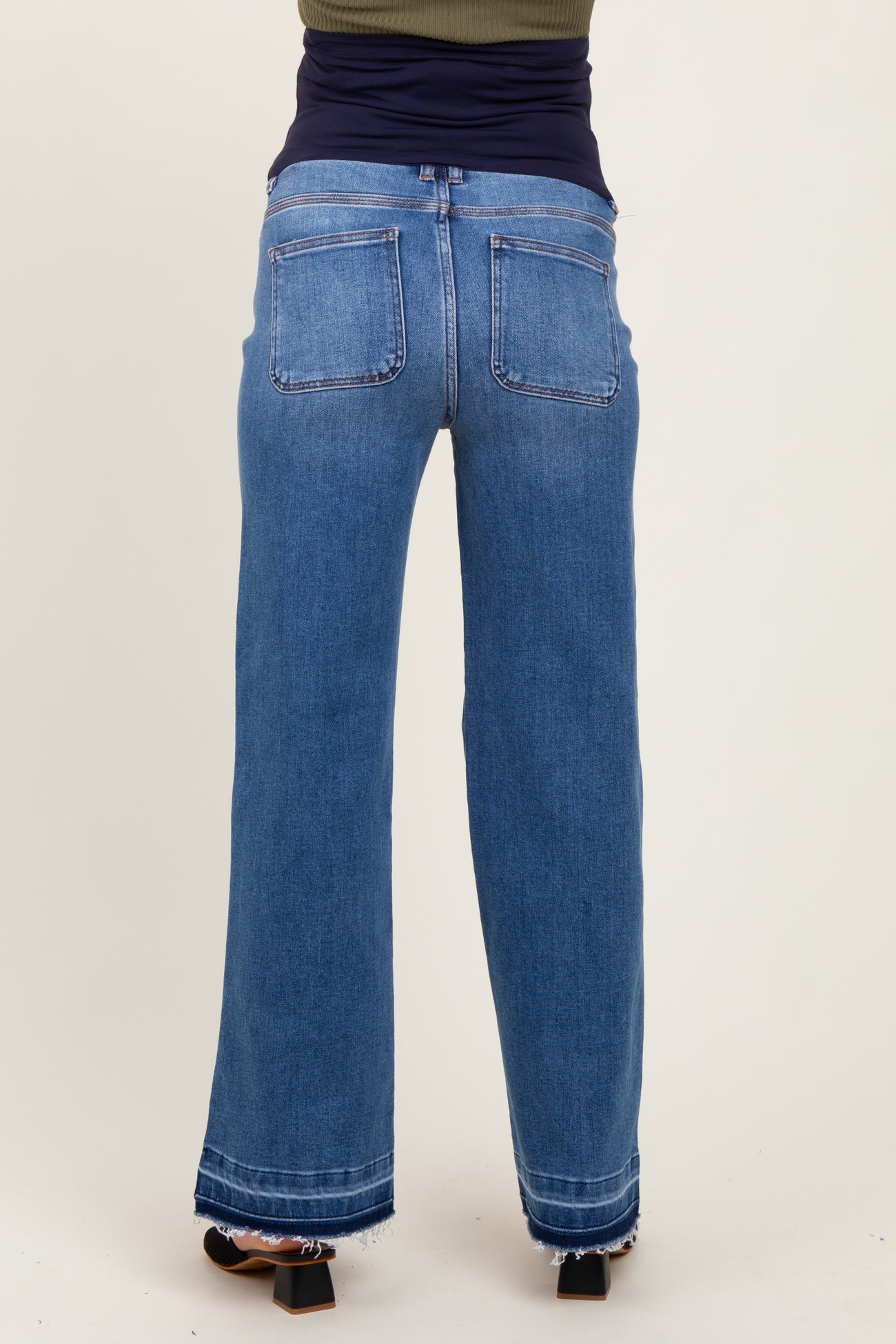 Experience effortless style and comfort with these Blue Raw Hem Distressed Ankle Wide Leg Jeans. Crafted from soft, high-quality denim, they feature a trendy wide-leg cut that flatters every body shape. The raw hem adds a touch of edgy sophistication, while subtle distressing enhances the cool, worn-in vibe. Designed with an ankle-length fit, these jeans are perfect for pairing with your favorite sandals or boots. Ideal for everyday wear or dressing up for special occasions, these maternity-friendly jeans offer a relaxed yet polished look. Embrace laid-back elegance with a modern twist—your new go-to denim essential!
