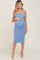 Blue Rib Knit Lace Up Back Maternity Midi Dress