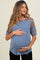 Blue Ribbed Animal Print Contrast Short Sleeve Maternity Top