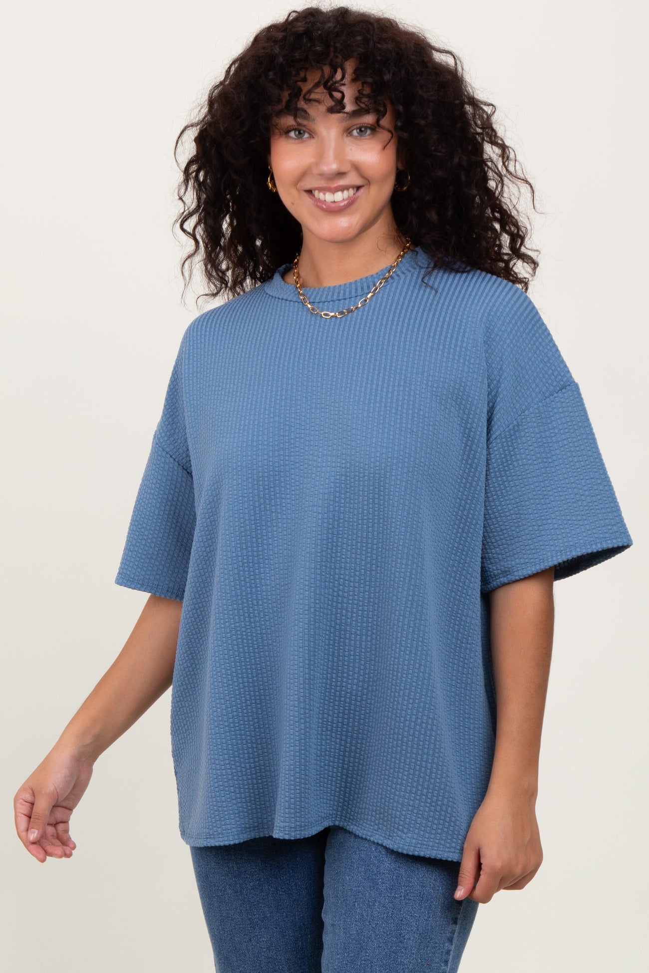 Blue Ribbed Short Sleeve Top