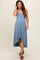 Blue Sleeveless Crisscross High-Low Wrap Maternity Midi Dress