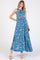 Blue Sleeveless V-Neck Ruffle Neck Tiered Maxi Dress