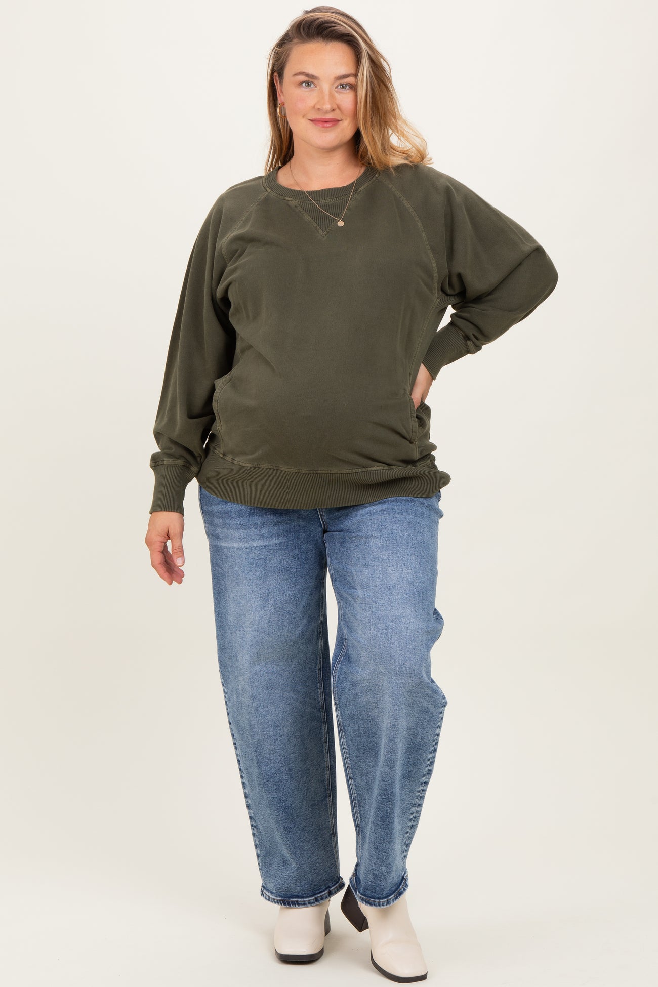 Experience comfort and style with our Slim Ankle Barrel Leg Maternity Plus Jeans, designed to support you throughout your pregnancy. These jeans feature a flattering silhouette with a modern barrel leg cut that hits just above the ankle, perfect for pairing with your favorite footwear. Crafted with a stretchy, soft denim blend, they provide excellent flexibility and ease of movement, adapting beautifully to your growing bump. The adjustable waistband offers a personalized fit, while the thoughtful design ensures comfort without sacrificing style. Ideal for everyday wear, these jeans effortlessly blend practicality with trend-forward design, making them a maternity wardrobe essential.