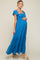 Blue Smocked Ruffle Off Shoulder Tiered Maternity Maxi Dress