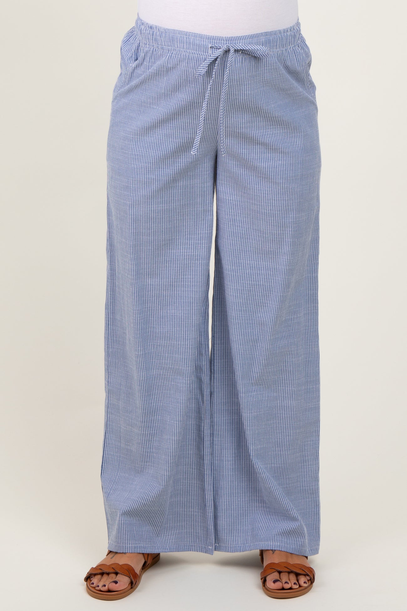 Blue Striped Drawstring Wide Leg Maternity Pants