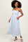 Blue Striped Shoulder Tie Smocked Maxi Dress