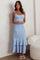 Blue Textured Shoulder Tie Layered Hem Maxi Dress