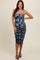 Blue Velvet Floral Ruched Mesh Maternity Midi Dress